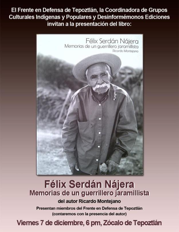 No es casual que el primer título sea: Félix Serdán Nájera. Memorias de un guerrillero jaramillista, escrita por el periodista Ricardo Montejano, un libro que, basado en decenas de horas de grabación con don Félix, relata la vida de un heredero de las luchas campesinas de Zapata y Jaramillo.